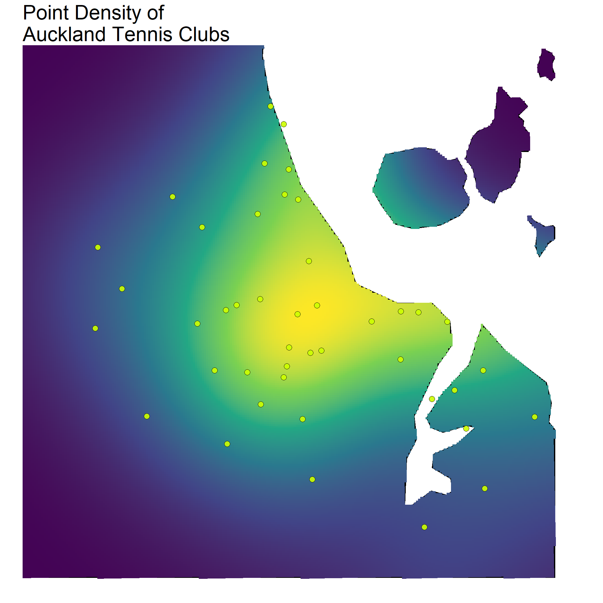In this post, I look at how you can use density functions to make a heat map of Tennis courts locations in Auckland, New Zealand.